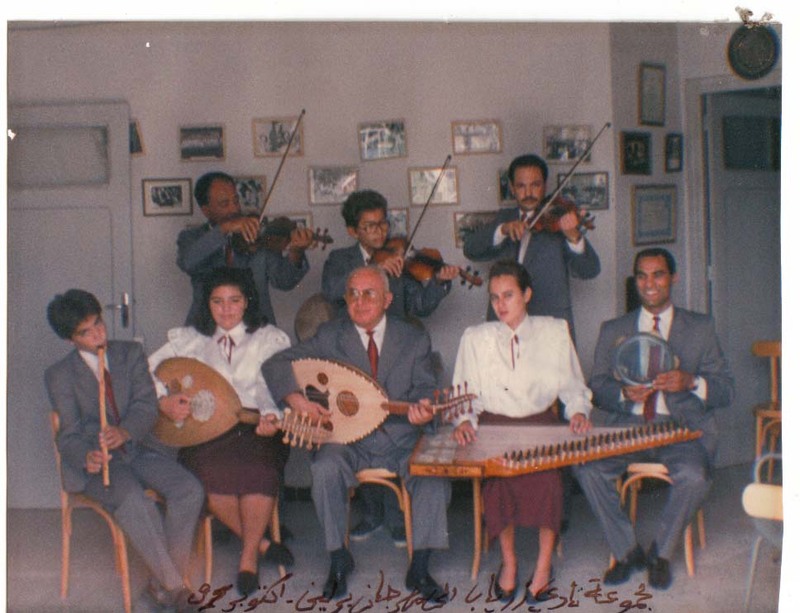 يظهر الأستاذ صالح المهدي في الوسط و بجانبه حفيدته سيرين ثم حفيده فارس و على يساره إحدى بنات النادي تعزف القانون و وراءه في الوسط حفيده قيس صانشو على اليمين السيد أنور الشرفي