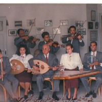 On voit le professeur Salah El Mahdi au centre, à ses côtés sa petite-fille Sirine puis son petit-fils Fares. À sa gauche, l’une des jeunes du club joue du qanûn. Derrière lui, au centre, son petit-fils Kais. Sur la droite, M. Anouar Cherfi.