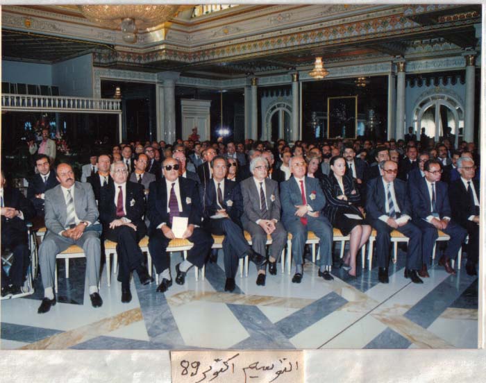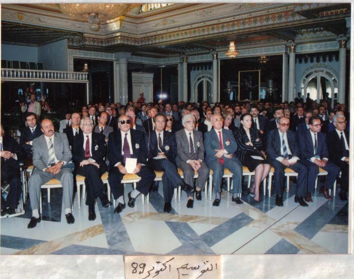 The awarding of medals to the people sitting in the first row by President Zine El Abidine Ben Ali