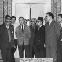 El profesor Salah El Mahdi y, a su derecha, el Sr. Abdelhakim Abdel Jawad (Jefe de Gabinete del Ministro de Cultura), el Sr. Chedly Klibi, el Sr. Habib Al-Amri y el Sr. Hamah Al-Triki. A la derecha del profesor Salah El Mahdi está el Dr. Hefny.