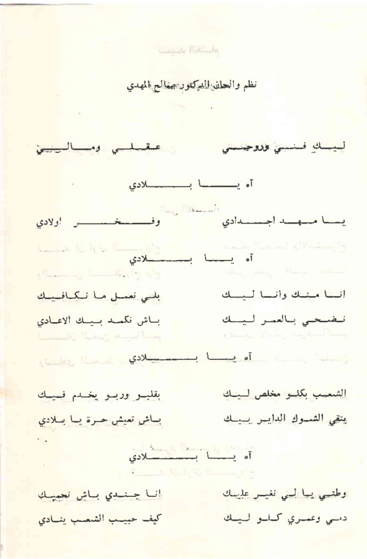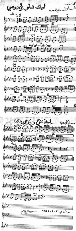 - ar لم تسجل هذه الأغنية حسب ما ذكره الملحن في التسجيل ـ ترقيم الأغنية يحمل تاريخ 1986 (؟)