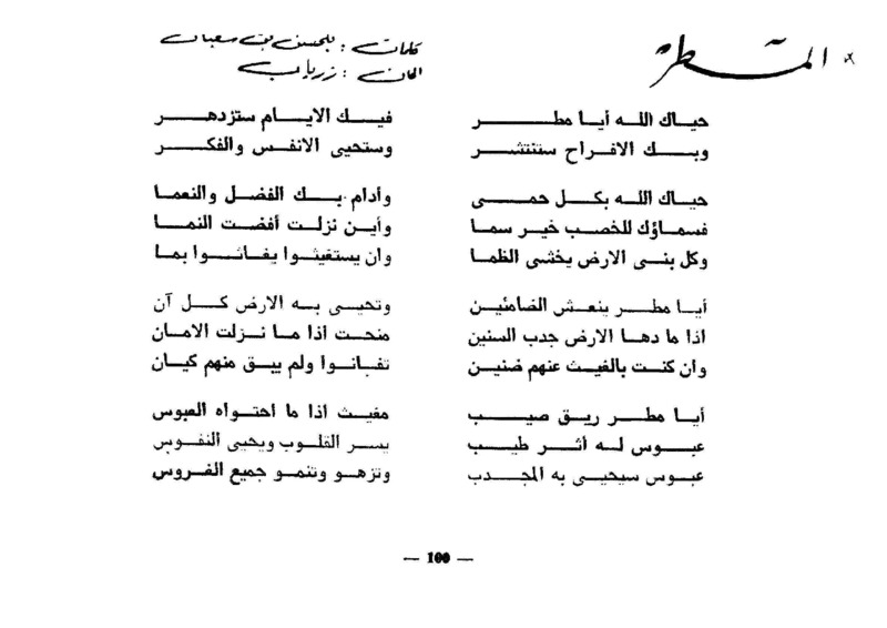 - Ḥayyāk allāh yā maṭar (nuskhah muḍāʻafah unẓur 412)