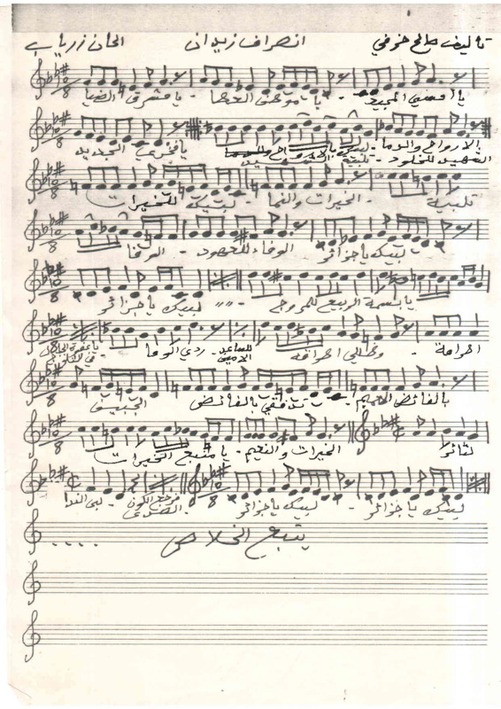 ar العنوان الأصلي ليس للأغنية بل هو وصف لمقامها وإيقاعها ـ الترقيم الموسيقي يوحي أن الأغنية في إيقاع الانصراف الجزائري