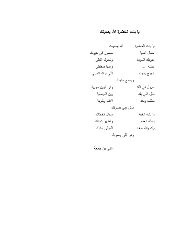 - Yā bint al-khaḍrāʼ allāh yaṣūn