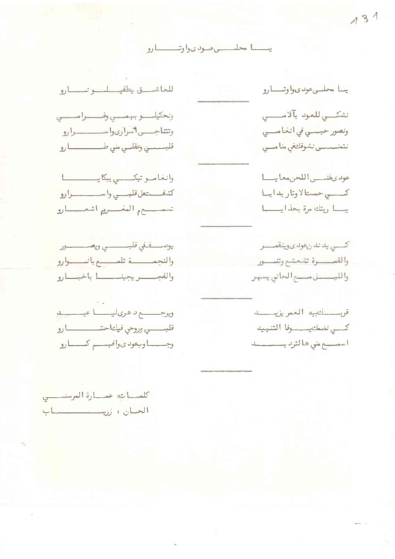 Yā mā aḥlā ʻūdī wa ʼawtāru