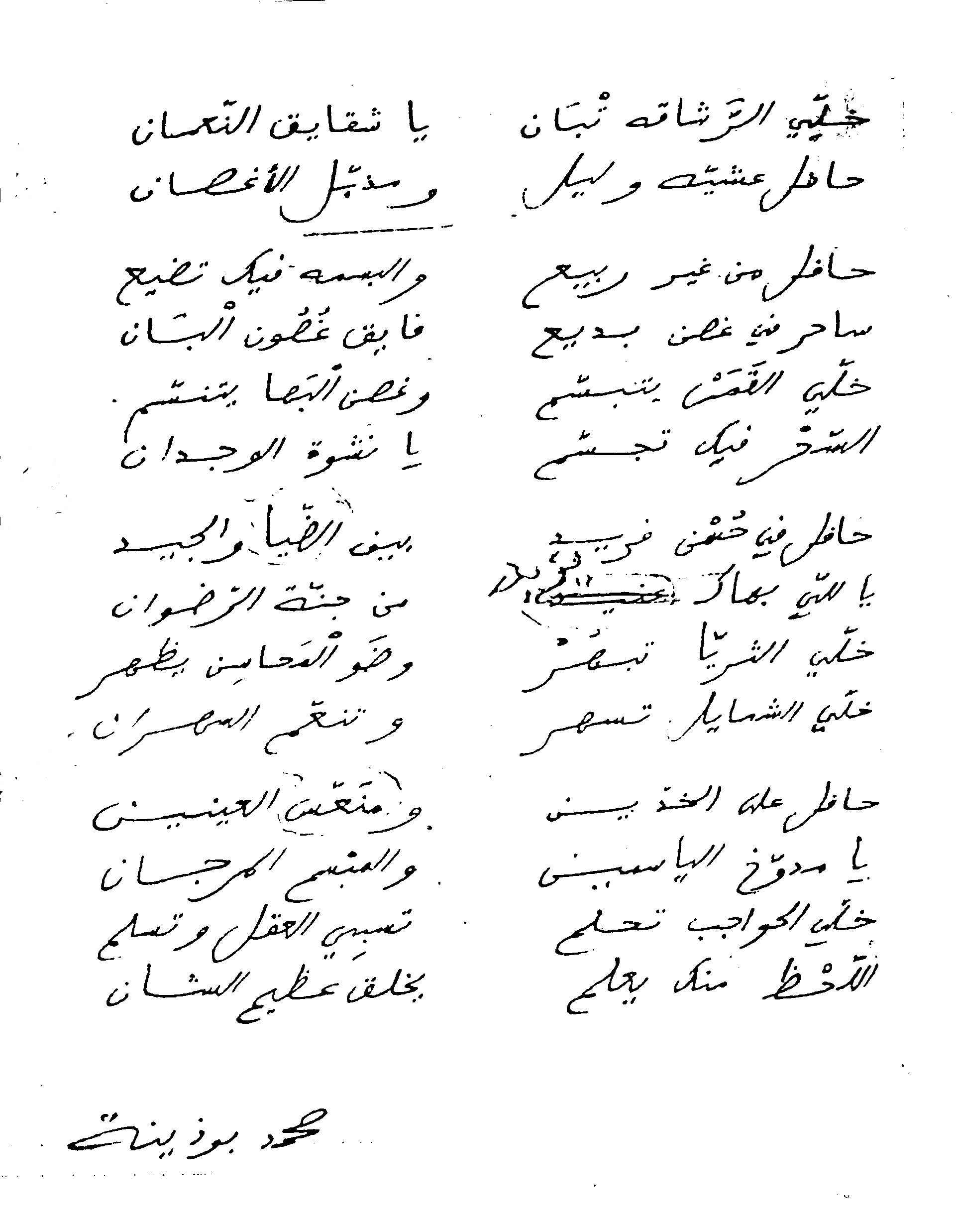 - ar أرجع الملحن تاريخ الأغنية إلى السبعينات والغالب على الظن أنها لحنت في التسعينات باعتبار أن الشاعر لم ينشر أعماله في السبعينات