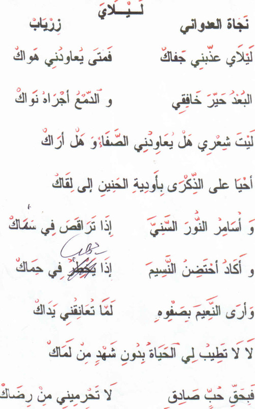 - ar ذكر الملحن في التسجيل أنها لحنت سنة 1954 في حين أن الشاعرة ظهرت خلال أواخر الثمانينات من القرن العشرين