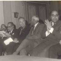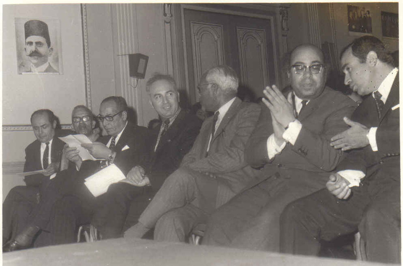 الأول السيد طيب الدريدي ( رئيس ديوان وزير التربية ) و الثاني محمد المرزوقي و يليه صالح جودت و يليه السيد صالح الهمدي و يليه السيد عبد الحميد الجزيري ( أمين مال الرشيدية ) و الدكتور يوسف شوقي و المندوب الثقافي المصري