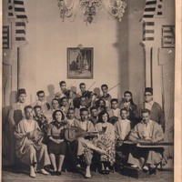 صورة لأعضاء من فرقة الرشيدية أثناء تمرينهم في قاعة القاعة الكبرى للمعهد الرشيدي