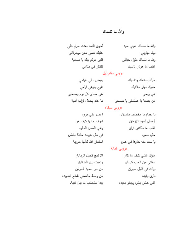 - ar يقول عنها الملحن أنها من نوع الفوندو ـ لم تسجل