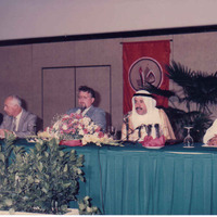 يرى عن يمين الأستاذ صالح المهدي: الأستاذ يوسف شوقي (خبير من مصر أشرف على تنظيم المؤتمر)/ الأمين العام للمنظمة/ مندوب من البحرين / مسؤول في وزارة عومان
