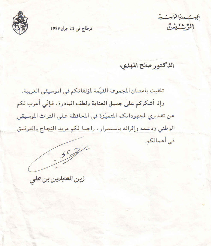 - بعد الإطلاع على مجموعة من المؤلفات التي قام السيد صالح المهدي لرئيس الجمهورية زين العابدين بن علي